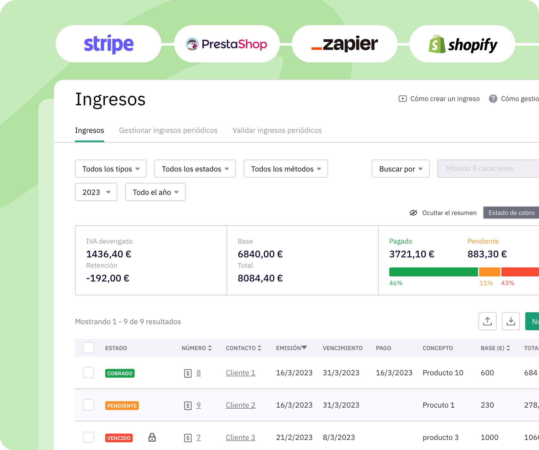 Integra tu cuenta de Quipu con Stripe, Paypal, Prestashop, Zapier y otras plataformas