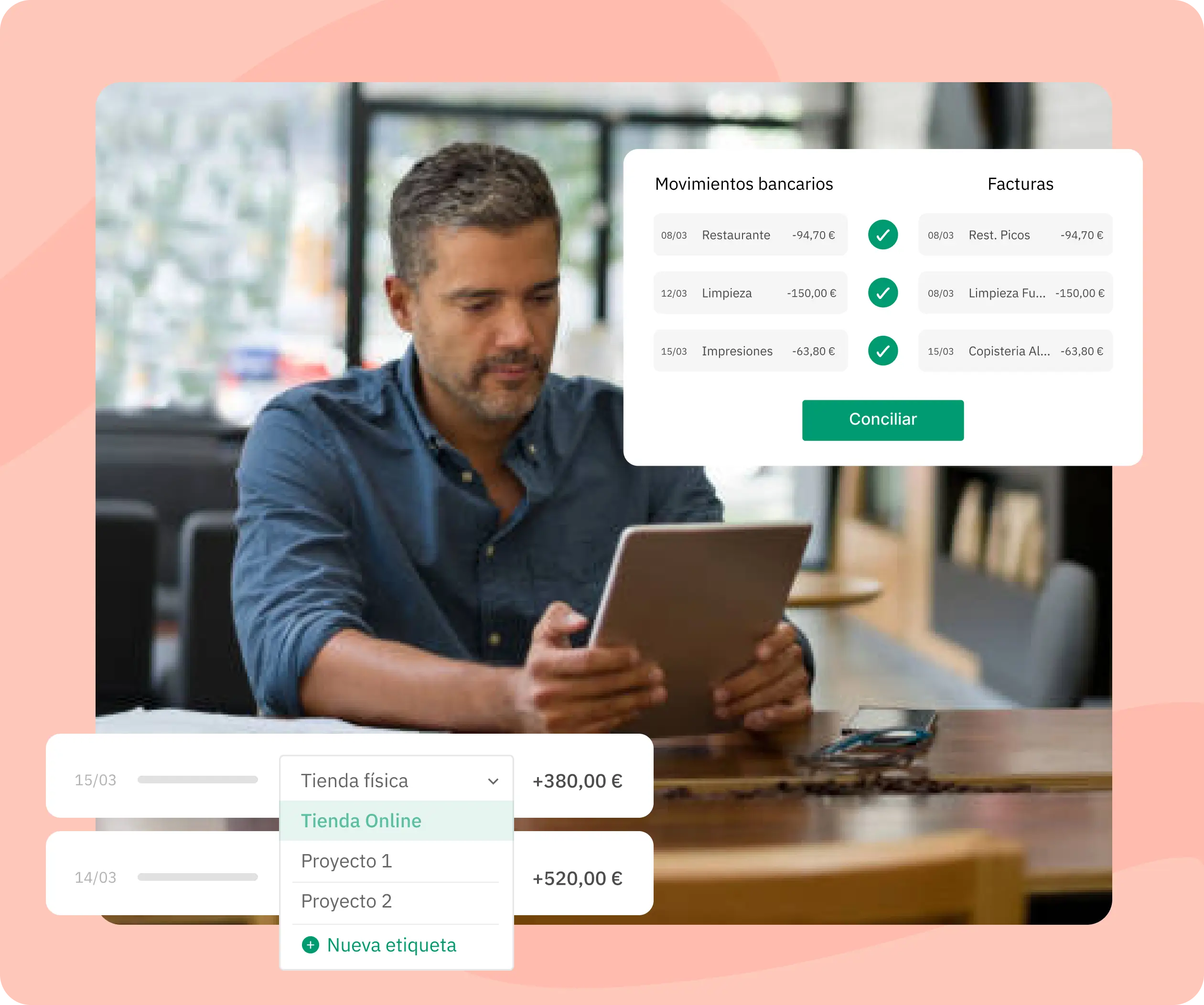 Conecta tu banco y valida tus cobros y pagos en un sólo click